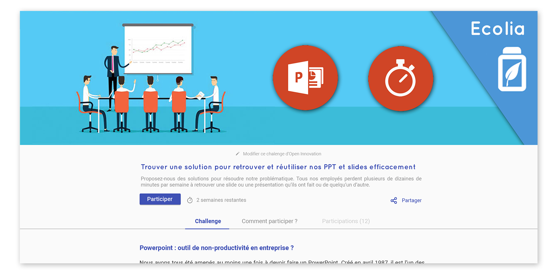 L’entreprise créé facilement des challenges externes à diffuser auprès de leurs clients, fournisseurs et écosystème.
